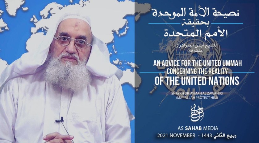 Nel video divulgato lo scorso 22 novembre da As-Sahab, la casa di produzione di Al Qāida, Al Ẓawāhirī è riapparso nuovamente sugli schermi puntando il dito contro il tentativo dell’Emirato talebano di trovare un posto a sedere tra le cosiddette “Nazioni Unite”. Al Ẓawāhirī non fa menzione della lettera inviata all’ONU lo scorso 20 settembre dal ministro degli esteri talebano, Ameer Khan Muttaqi, contenente una richiesta di partecipazione alla sessione annuale dell’Assemblea Generale, invece del rappresentante del governo precedente. Sui talebani, in generale, nessun cenno, nessuno.